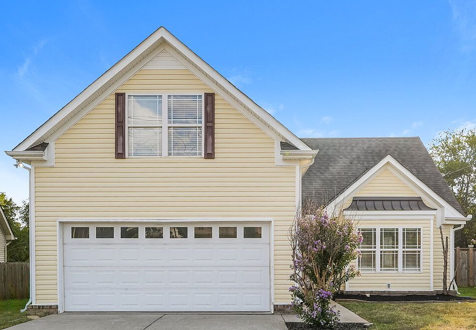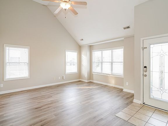 A neutral color scheme and natural light flowing through every room make this three-bedroom, two-bathroom Smyrna rental home light and airy. Multiple front- and side-facing windows create a sun-soaked living room, complete with a vaulted ceiling and a lighted ceiling fan. Steps away is the dining room, where a sliding glass door opens to the backyard patio, allowing for a lovely indoor and outdoor area to enjoy meals. A chandelier offers brightness in the evening. The large open upstairs sitting room has a vaulted ceiling and multiple illumination options, including large front-facing windows, recessed lighting, and a flush-mounted ceiling light. Arrange time now to learn more about this pet-friendly Tennessee rental home.