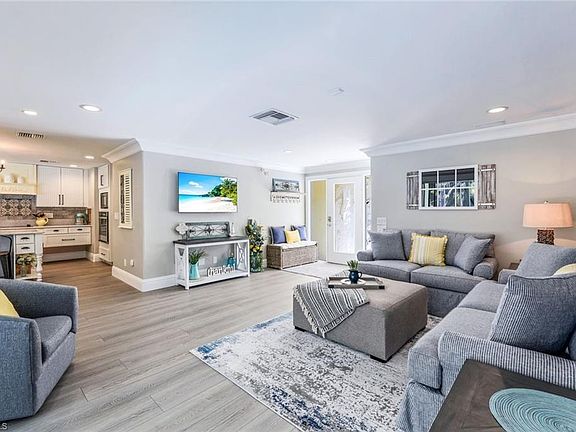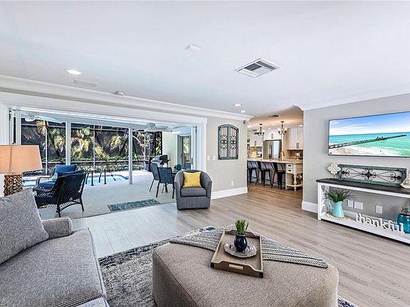 Just blocks from the pristine Gulf beaches and minutes from world-class shopping and dining, this fully remodeled Park Shore pool home offers the perfect blend of comfort and location. Featuring 3 bedrooms, 3 full baths, and a sparkling heated pool, the residence is nestled behind a circular driveway and surrounded by lush tropical landscaping your private oasis in the heart of Naples. Step into the light-filled living room, where comfortable furnishings, a large flat-screen TV, and a wall of sliding glass doors create a welcoming space that opens seamlessly to the lanai. Stay connected with unlimited Wi-Fi and enjoy whole-home audio via the state-of-the-art Sonos sound system. The designer kitchen is a chef's dream, complete with granite countertops, new appliances, and thoughtful touches throughout. The primary suite features a luxurious king bed and direct access to the lanai. The second bedroom also offers a king bed, while the third provides flexible sleeping arrangements with either a king or two twin beds ideal for families or guests. Outdoors, gather on the patio or unwind in privacy beside the pool. For added convenience and enjoyment, bicycles and exclusive Park Shore Beach passes are included. Nearby, enjoy upscale shopping and exceptional dining at Venetian Village, Mercato, and Waterside Shops. Just a short drive away, discover the vibrancy of Downtown Naples' 5th Avenue South, where you'll find unique retail shops, restaurants, theaters, galleries, art fairs, car shows, outdoor concerts at Cambier Park, and much more. Experience the best of Southwest Florida and create lasting memories in this vacation-ready retreat. Whether you're seeking relaxation or adventure, this property puts the very best of Naples right at your fingertips.
