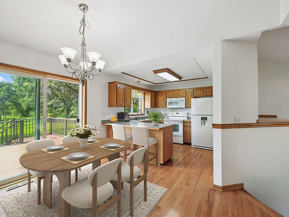 Welcome to your little country oasis close to the city! This 4 bed, 2 bath home sits on 12.24 flat, open DRY acres! There is a 2 car attached garage with an oversized 30x40 outbuilding that could fit another 2-4 cars! There are 2- 50 amp outlets and a 30 amp outlet on the exterior of the building to plug in trailers, campers etc. The building has 2 window unit a/c's and is insulated and heated for year round temperature control! Additional storage is attached under the 12x40 lean-to. You'll enjoy overlooking your acreage on the maintenance free deck or the lower level concrete patio. And the kids or pets will be safe in the fully fenced area behind the house. Inside you'll be welcomed into the large foyer with natural light from the skylight and upstairs feels just as bright with a fresh coat of paint. Retreat into the primary suite with a walk-in closet and a walk-through to the main level bath. The lower level has 2 bedrooms and a renovated bathroom with a large family room that walks right out into the beautiful backyard as well! There is a possibility to split or sell the land for potential income opportunity as well! Lots to enjoy here! Book your showing today!