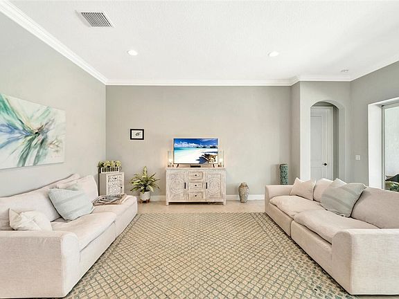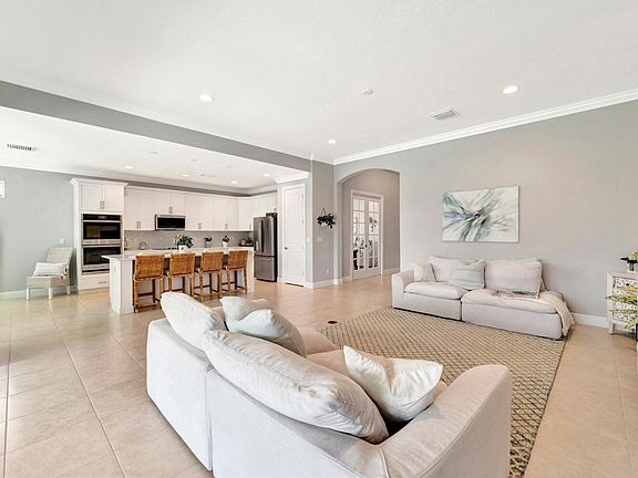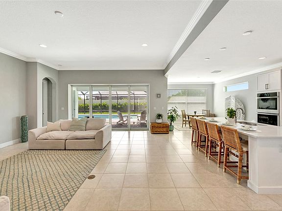 Enjoy the best of Florida living in this stunning 2022 GHO-built Capistrano Grande! This thoughtfully designed home features an open-concept layout with triple split bedrms and private den. The interior has high-end finishes including crown molding, coffered ceilings, island kitchen with quartz countertops, and GE stainless appliances. Set on a spacious corner lot with an expansive screened pool. Perfectly positioned with an eastern facing backyard for afternoon shade. CBS constructed and equipped with impact windows and doors and a 3-car garage. Move in ready with nothing left to wish for!