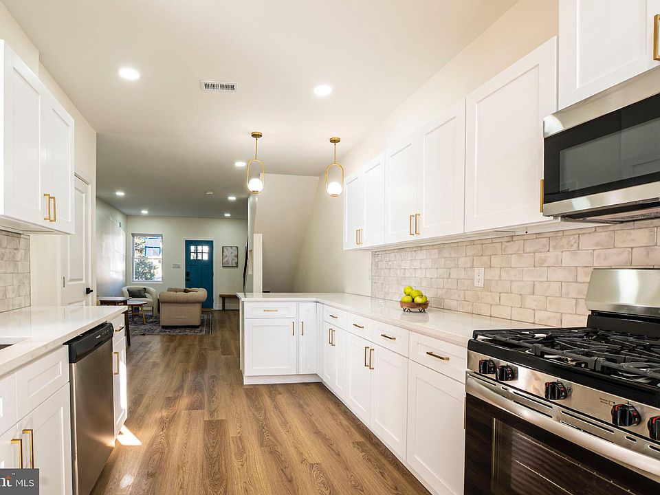 Fully renovated, move-in-ready home with a walkout basement apartment—offering livable luxury rarely found in 19138. Everything has been considered in this full-scale renovation—delivering move-in-ready, livable luxury rarely found at this price point. Welcome to 7230 Briar Road, where modern design, thoughtful layout, and brand-new finishes come together in a home that truly stands apart. The main level features a brand-new contemporary kitchen with shaker cabinetry, quartz countertops, brass hardware, stainless steel appliances, and a designer tile backsplash. A stylish half bath for guests, new flooring, fresh paint, and upgraded windows create a bright, seamless layout perfect for both everyday living and entertaining. Upstairs, you'll find three nicely sized bedrooms with great natural light and a fully updated hallway bathroom with designer tile, modern lighting, and matte-black fixtures. The lower level is a full walkout basement apartment with a private bedroom, modern bathroom, laundry hookup, exterior entrance, and flexible use — ideal for in-laws, extended family, guests, or rental income. Step out onto the brand-new deck directly off the kitchen for effortless outdoor living. Every surface has been refreshed or replaced — offering a rare opportunity to move right in and enjoy without lifting a finger.