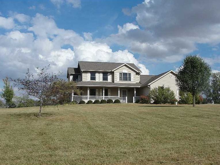 Stately 2 story perched on just over 4 acres. Inside features two-story foyer, spacious kitchen open to dining area and family room. First floor owner suite and laundry room. Second floor with 3 additional bedrooms and bath. Partially finished basement for added living space. Large deck overlooks rolling acreage with pond. Sold as-is.