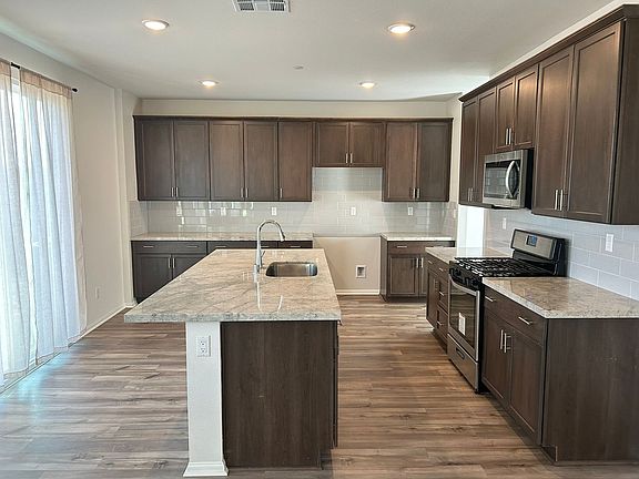 Beautiful single-family home for rent in Riverside. This modern property features 5 bedrooms and 3 bathrooms, spanning 2,903 square feet with central air and heating. The home boasts numerous upgrades, including wood flooring downstairs, carpeted bedrooms, granite countertops, stainless steel appliances, a walk-in pantry, ample kitchen cabinet space, recessed lighting, energy-efficient double-pane windows, and a tankless water heater. There's a downstairs bedroom with a full bath, a formal dining room or office, an upstairs loft/bonus room, and an upstairs laundry. The spacious master bedroom includes dual sinks and a walk-in closet. Conveniently located near Jurupa Ave and Tyler St in Riverside. SCHOOL DISTRICT: Alvord Unified School District UTILITIES: Tenant pays all utilities LANDSCAPING: Tenant billed $100 monthly PET POLICY: Small pets may be allowed. Submit photo(s) w/applications