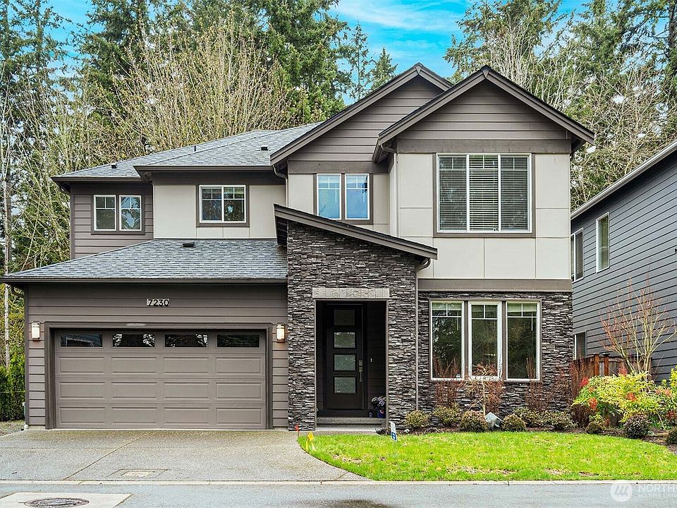 Stunning south-facing DR Horton home built in 2021, nestled in Kirkland’s tranquil Juanita neighborhood. This 4-bedroom, 2.5-bath residence sits on a huge nearly 1/4-acre lot and features an open layout with soaring 9-ft ceilings on both levels. A spacious main-floor office offers potential for a 5th bedroom. High-end finishes include hardwood floors, quartz countertops, stainless steel appliances, and a spa-inspired primary suite with a soaker tub. Equipped with a tankless water heater and A/C for year-round comfort. Enjoy a private backyard retreat on a quiet street with no HOA. Close to parks and scenic trails for endless outdoor recreation.