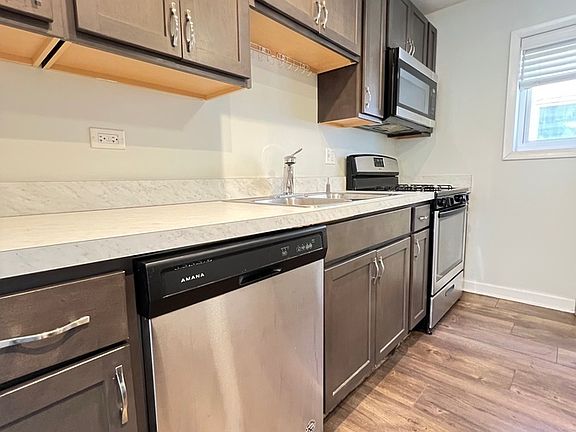 Modern appliancesDark brown cabinetryPlenty of natural lightBuilt-in dishwasherGas stovetopBright and inviting unitUpdated kitchen