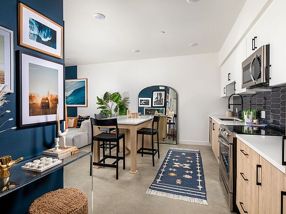 - Exterior features: Concierge, Expansive Windows, Flooring: Concrete, Gourmet Equipped Kitchens, Honeywell Smart Thermostats, In Select Units*, Keyless Entry, Linen White Quartz countertops with full height Ti, Modern Matte Black Framed Bathroom Mirrors, Moen Matte Black Plumbing Fixtures, Natural Wood & Upper White Two-Toned Cabinetry wit, Package Receiving, Patio/Balcony/Deck*, Pet Park, Private Garages* with optional electric vehicle ch, Smooth concrete-style luxury metro flooring*, TV Lounge, Wood-Style Flooring