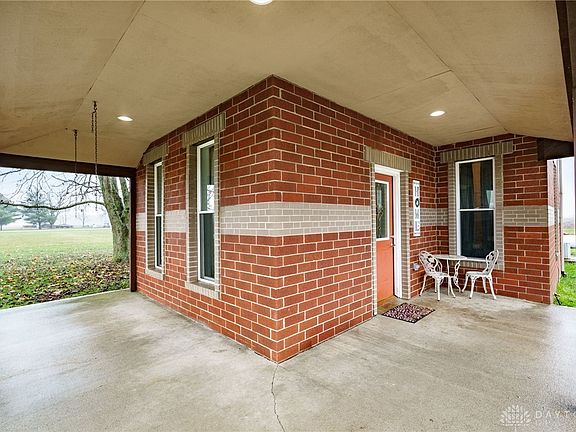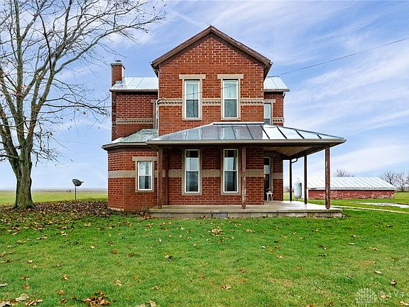 This special 4-H Farmstead is perfect for animals & those seeking rural living, rustic farmhouse flair, multiple outbuildings and 5 acres bordered by private farm fields. Artistic brickwork, metal roofing and a wraparound front porch elevate this home from the outside. Inside, you’ll enjoy nearly 2,000 square feet, oversized rooms, 10 foot ceilings, lots of natural light and opportunity for up to 5 bedrooms! Replacement windows, an upgraded entry door, updated electrical and a brand-new furnace keep this home efficient year-round. A tiled entry leads into a bonus flex space large enough for use as home office! A substantial wood beam adds a subtle divide into the living room w/plush neutral carpeting, repurposed original front door and knotty pine details. Hardwood flooring flows into the formal dining room warmed by a corner wood burning stove w/an authentic brick & stone hearth. Space continues in the king-sized kitchen w/ceramic flooring, custom wood cabinets, gas range, double ovens, a large eat in area and an adjacent full bath. A main level bedroom and large utility/laundry room add convenience to the layout. Bring your ideas as the 25 X 13 bonus room sports Cathedral ceilings, walls of windows and a shiplap feature wall allowing use as family room, sun porch, play room or craft space. Upstairs, you’ll find wood plank flooring and 4 bedrooms grouped around a spindled center hall. The primary suite offers plush, neutral carpeting and an ensuite bath w/double sinks, jetted tub & a roman shower w/dual shower heads. Explore the potential w/outbuildings to include a detached 1 car garage, chicken coop, corn crib and massive livestock barn w/concrete floors, overhead loft, full-service electric, oversized overhead doors & well access! Welcome to 7231 Dull Rd; a rural retreat serviced by the Arcanum Butler school district.