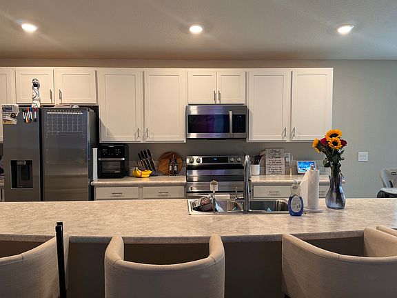 This inviting SINGLE STORY 4 bedrooms, 2 bathrooms and 2 car garage spans 1705 sqft and is designed for both comfort and convenience. This single story concrete house was built in 2022. A kitchen features an elegant countertop, and a huge island, with a stainless steel refrigerator, microwave, stove, and brand new washer and dryer with a dishwasher. Our community is only 6 minutes up the street from your nearest Publix shopping center. We have many schools surrounding our area, just minutes away. Quiet neighborhood! Beautiful view of the sunset with open conservation at the backyard. Owner is responsible for HOA fees. Tenant is responsible for Water, Electric, and Garbage. Tenant is also required to maintain property by changing AC filters monthly and maintaining the Landscaping. $250 pet deposit fee **