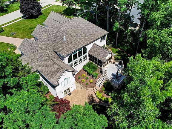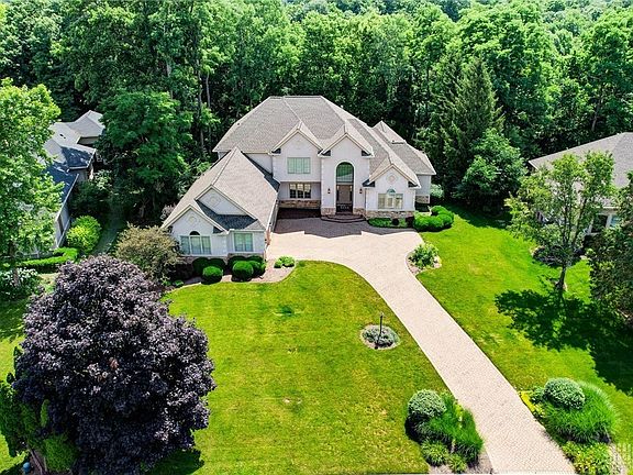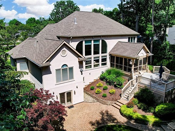 Welcome to this stunning custom-built Homearama property in the sought-after Meeker Creek community of Butler Township. Nestled on a serene .86-acre wooded lot, this beautifully maintained 3-bedroom, 3.5-bath home offers over 5,400 square feet of thoughtfully designed living space. The grand entry leads to a light-filled great room with soaring two-story windows and wooded views. The chef’s kitchen features custom cabinetry, ample prep space, and an island with built-in cooktop—easily convertible to gas. A private home office with French doors and built-ins offers the perfect work-from-home setup. The main-level primary suite is a true retreat with a fireplace, jetted tub, walk-in shower, dual vanities, and walk-in closet. Upstairs are two spacious bedrooms, a full bath, and a versatile loft ideal for a fourth bedroom or bonus area. Architectural plans also include potential for an additional 800–900 sq ft of living space above the garage. The finished walk-out basement is an entertainer’s dream with a fireplace, media wall, kitchenette, full bath, and Bose sound system with indoor/outdoor zones—ideal for a guest suite or teen retreat. Step outside to the paver patio with firepit and enjoy the peaceful, fenced backyard that extends to a stream with a footbridge. Enjoy outdoor living on the screened-in porch (new screens 2024) with wooded views and privacy. Recent updates include a whole-house water purification system (2023), tankless water heater (2023), HVAC (2024), roof (2019), smart irrigation (2025), smart smoke/CO detectors, and more. Conveniently located near I-70/I-75, Dayton International Airport, and shopping/dining at Austin Landing and The Greene. This is a rare opportunity to own a one-of-a-kind home with room to grow, entertain, and relax in a peaceful setting. Schedule your private showing today. All you have to do is move in!