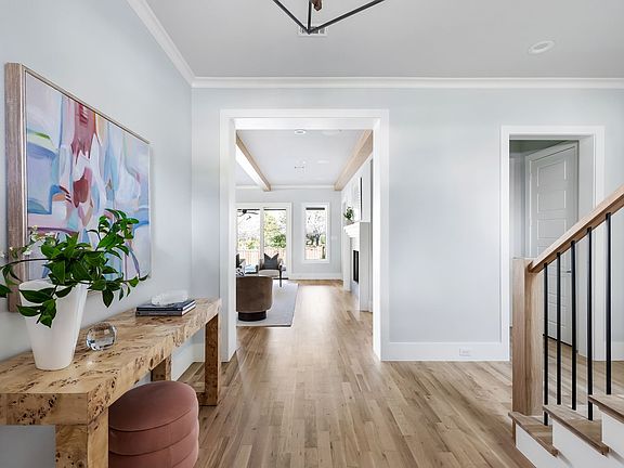This breathtaking home blends timeless design with modern sophistication, ideally situated in one of Lakewood’s most coveted enclaves just steps from White Rock Lake. Nestled on a serene, tree-lined block, this custom residence by Montgomery Custom Homes sits on an oversized .29-acre lot that perfectly frames its best-in-class amenities. A picturesque drive-up welcomes you with an inviting front porch, gas lantern, and mature live oaks. Inside, white oak hardwoods, striking beam details, and refined transitional design create an atmosphere of understated elegance. Anchored by a beautiful center fireplace, the family room flows into the dining room and chef’s kitchen, with expansive windows and sliding doors that frame the outdoor retreat—perfect for entertaining. The dining room offers custom built-in cabinetry, while the kitchen features a top-of-the-line Thermador appliance package with dual dishwashers, a secondary prep kitchen, and a walk-in pantry. The inspiring primary suite is thoughtfully designed with a private vestibule, vaulted ceilings, spa-like bath with dual vanities, and a generous walk-in closet. Each secondary bedroom includes an en-suite bath and walk-in closet, ensuring comfort and privacy. At 5,276 square feet, this home has it all: a dedicated study overlooking the front yard, a spacious upstairs game room, a large mudroom, and two half baths. The tranquil backyard feels like a private sanctuary, surrounded by treetop views that create a seamless connection to nature. Designed for both relaxation and entertaining, it features an incredible outdoor living center with a full kitchen, built-in fire pit, and multiple areas for dining and lounging. Expansive green space completes the retreat and allows plenty of space for a pool. Enjoy peaceful mornings, lively gatherings, or quiet evenings under the stars—all to be enjoyed year-round. Homes rarely come available in this sought-after pocket—truly a special location for families & outdoor enthusiast.