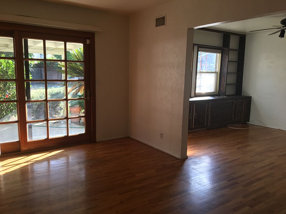 Great 3 bedroom house with open floorplan and a studio off the kitchen. Hardwood floors in living and Den, new carpet in Bedrooms. Master has its private newly remodeled bathroom. Garage converted into Studio.