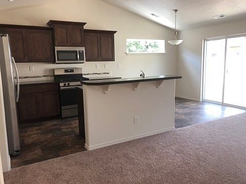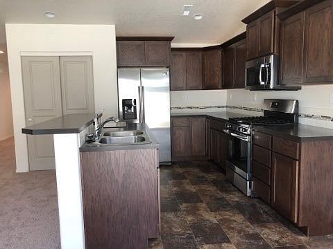 THIS Spokane Valley home constructed in 2019 is a 3 bedroom/2 bath fenced Stoneridge home and is open throughout the family and dining room into the kitchen with a large island. The kitchen comes with stainless steel appliances including refrigerator, gas stove, dishwasher, built in microwave and a garbage disposal.