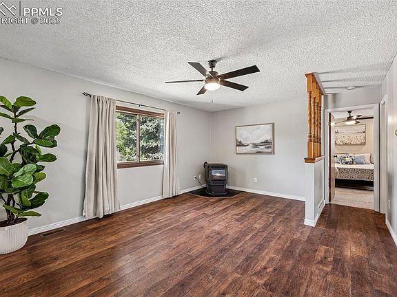 Charming Bi-Level on a Quiet Cul-De-Sac! This 1,824 sq ft, 3-bed, 2-bath home offers incredible value and a prime location. The interior is move-in ready with brand new carpet, newer durable luxury vinyl plank flooring in living room, kitchen and dining areas, and stylish wood-look tile in the entryway. Enjoy two cozy heat sources: a pellet stove in the upper-level living room and a classic wood-burning fireplace in the lower-level family room. Newer kitchen appliances, kitchen faucet and vent hood. Situated on a spacious .27-acre lot with a prime location close to Peterson SFB, Schriever SFB, and Fort Carson. The home has great bones and is waiting for your finishing touches on the exterior. A fantastic opportunity to build equity!