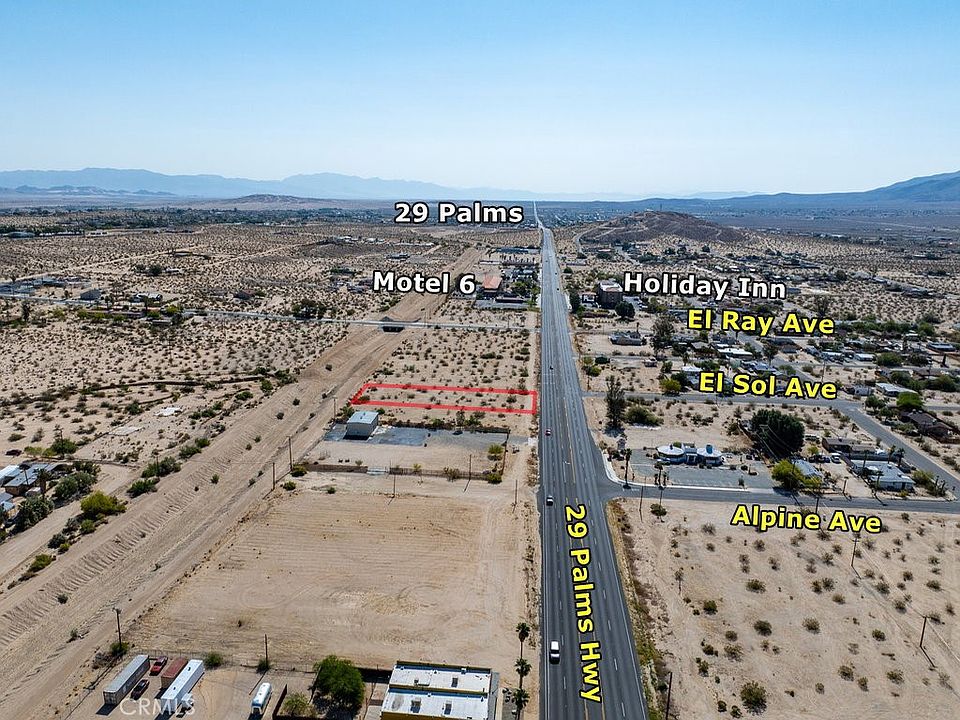 ***RARE opportunity***Own a property directly fronting 29 Palms Hwy in the heart of town. This lot is zoned CG (General Commercial) by the city, which allows a broad range of commercial, retail, professional office and service-oriented businesses, including supermarkets, restaurants, hotels/motels and specialty retail stores. It’s 1 block away from many well-known businesses like Holiday Inn, Motel 6, Rite Aid, O’Reily and others. Utilities are nearby. 29 Palms has been enjoying a robust growth in recent years with lots of new businesses opening up and population continued to grow. Do not miss this opportunity to make your dream come true on this blank canvas. Please note that the boundaries represented in the photos are only an estimation.