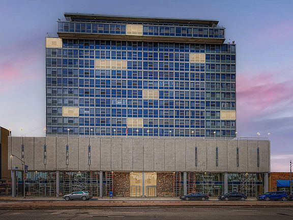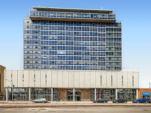 Rarely available top-floor unit in the sought-after Cameo Towers. Spacious 2-bed 1-bath with sweeping skyline and sunset views. The unit features spacious room sizes and large windows, allowing for natural light. Includes two heated garage parking spaces. Building amenities feature an outdoor pool, sundeck, laundry facilities, and secure entry. Prime Elmwood Park location with easy access to shopping, dining, public transportation, and city commute.