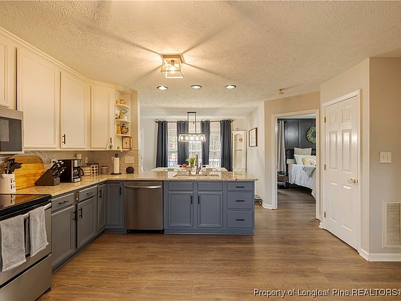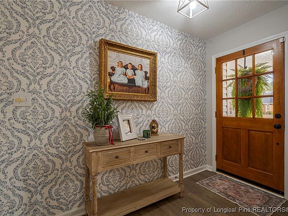 Nestled just before the cul-de-sac, you’re welcomed by a ROCKING CHAIR FRONT PORCH and a charming entryway featuring STUNNING WALLPAPER that leads into the SPACIOUS LIVING ROOM WITH FIREPLACE. The open layout continues into the EAT-IN KITCHEN showcasing BEAUTIFUL CABINETRY, GRANITE COUNTERTOPS, ABUNDANT NATURAL LIGHT, and a convenient PANTRY.