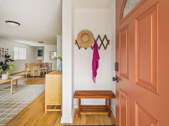 Big price reduction! Built in 1908, this sweet bungalow has settle-down energy: a front porch for slow mornings, spacious rooms, and a rhythm that just feels right. The mums are blooming, the light is golden, and everything feels grounded.Bedrooms are light-filled and roomy. Bathrooms are updated with spacious vanities and stylish wallpaper. The kitchen has cabinet & pantry space for all your gadgets- and the dining room is large enough for hosting. Hardwood floors (with brand new hickory upstairs) elevate the vibe—and rockwool insulation between living levels keeps things whisper-quiet.Detached garage has space for your weekend wheels—or throw the door open and use it as a home gym or project space. Enormous basement with tall ceilings is pure potential—gear storage, woodshop, art studio, etc.Out back, the flagstone patio & covered deck are made for lingering with a blanket and cozy bevy. Pluck figs for your next charcuterie board, gather raspberries for morning granola, or make quince preserves to share with neighbors & friends. The front yard is a gardener's paradise, with raised beds on drip irrigation and southern exposure for maximum sun. Veggies so perfect you'll never buy store-bought again, and perennial blooms to clip for inside.The boring stuff? Already handled. New gas furnace with central air, radon mitigation, updated electrical, fresh new exterior paint, dialed-in landscaping, and plenty of room to add your own touches. Mt. Scott Community Center and park (with new gym, indoor pool, and roller rink) is one block south. The Portland Mercado a few blocks north is undergoing a multi-million dollar renovation and will be open by early next year. Food carts, coffee, brunch, pizza/wine, boba, and a board game shop are all within reach. Woodstock and FoPo are closeby too. Come see! [Home Energy Score = 3. HES Report at https://rpt.greenbuildingregistry.com/hes/OR10182631]