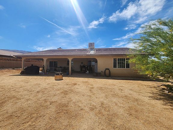 Newly updated 3 bedroom and 2 bathroom family home located close to Joshua Tree National Park entrance, schools, and the Marine base. The beautifully landscaped yard will provide you with great views of the mountains, nightly colorful sunsets, and cactus blooms throughout the year. Other amenities include: Central A/C and evaporative "swamp" cooling system with vents in every room (recently serviced) Washer & dryer (in garage) All stainless steel kitchen appliances Wood burning fireplace (recently cleaned and inspected) Outdoor shed Propane grill (with full tank) Electric pellet smoker (with pellets) 2 car garage with EV hookup Covered front porch and covered rear patio Built in security/fire/water/smoke monitoring system (SimpliSafe)