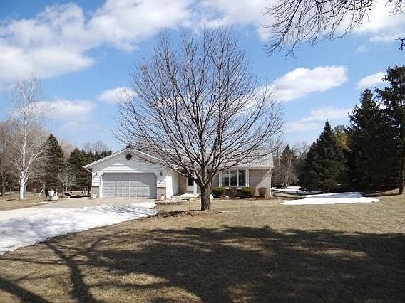 Just the perfect country Ranch on over two acres. Living room has vaulted ceiling and recessed lighting and is open to the kitchen and dining room with sliding doors to a new patio. Terrific view of nature with pine woods. Three bedrooms and two baths includes master suite. Full tall basement has rec room potential. Newer furnace, roof and concrete drive. Fenced side yard is great for the pets. Conveniently located between Racine and Milwaukee on a pretty, low traffic