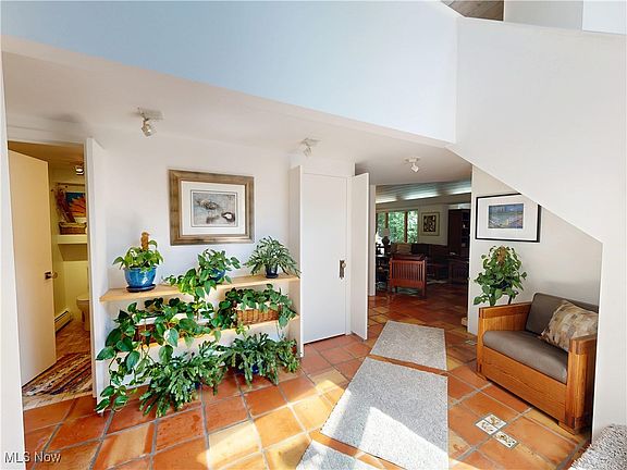 A gourmet kitchen with SieMatic cabinetry, newer appliances, and seamless flow to the dining room makes entertaining effortless. Sliding doors from both the kitchen and dining room lead to a spacious deck, perfect for outdoor dining, picnics, or simply listening to the soothing sound of the falls.
