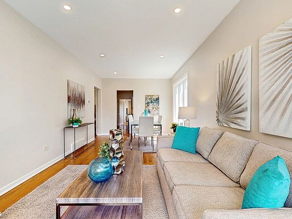 Welcome to a thoughtfully designed and beautifully updated 3-bedroom, 2.5-bath bungalow in Edison Park-where comfort meets convenience. All three bedrooms are located on the main level, creating an easy, functional flow for everyday living. Two bedrooms share a newly updated full bath, while the owner's suite offers the luxury and privacy of its own gorgeous en-suite bathroom-ideal for keeping mornings stress free. Toward the back of the home, the additional family room flows effortlessly to sliding doors that open onto a deck-great for entertaining or unwinding on warm Chicago nights. The fully finished modern basement adds even more living space with bright heather blonde flooring, sleek matte black ceilings, a convenient half bath, laundry room, generous storage, and a separate entrance-perfect for a media room, home office, or guest retreat.This home has been upgraded where it counts - electrical panel 2023, GFA and CA 2018, GFI, Windows 7-10 years, Tear-off Roof 12 years, newer sliding door, all new bathrooms, new flooring throughout, refinished oak floors, new lighting, and quartz countertops. Flood control system for added peace of mind.Commuters will love the unbeatable location-just minutes from the I-90 Harlem exit, Metra, and CTA Blue Line. Set in the highly desirable Edison Park neighborhood and within the sought-after school district, this home offers not only a fantastic location but also easy street parking-seller has estimate for adding a one-car garage if desired.