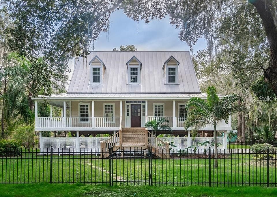 Welcome home to a stunning and very rare Key West style home on 3+ acres within minutes of everything but tucked away on a very quiet street of unique homes with no HOA minutes to the Alafia River that leads to the Gulf. This amazing home has 3 bedrooms + Bonus Play Room + Office + 1st level storage space + covered parking space and a huge shed are all included with a New Roof in 2020 & New AC in 2022! The complete wrap around porch is a great place to relax and capture gorgeous views of the secluded property with views of large trees, a pond with fountain and this home has a place for lots of animals with fenced pastures. The interior as been completely updated with newer kitchen with granite counters including a stunning island with slide in stove and lots of open cabinets for storage. There is a large pantry closet, stainless steel appliances and a stainless farmhouse sink that overlooks the yard. The kitchen is open to a large living / dining space with lots of large windows to overlook the property and incredible views. There is a fireplace in the family room that is a perfect space for Christmas stockings and complete with a 1/2 bath for guest and the 1st floor is complete with a 4th room that can be an office or 4th bedroom. Upstairs you will find a large master bedroom with gorgeous windows, walk in closet and opens the the master bathroom with updated walk in shower and dual vanity. Down the hall are the other 2 bedrooms and 2nd bath with a special play room attached. There are lots of new fenced in spaces to have lots of play places for pets or kids. Bring the toys, family and animals, there is something for everyone to love & NO HOA, NO CDD, NO Additional Restrictions! The location is incredible with the feeling of privacy and seclusion but only 10 minutes to major highways, restaurants and shops. If you are looking for a unique opportunity to live in the opposite of the typical Riverview subdivision, this is it! This home is only 25 min to downtown Tampa or 45 min to Florida's best beaches. Schedule a private tour to see this incredible home for yourself!