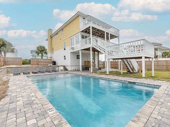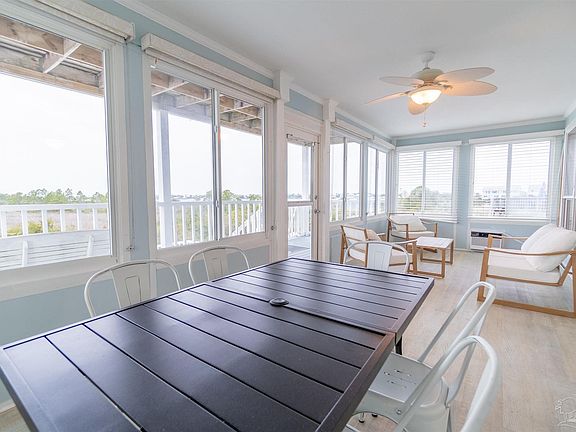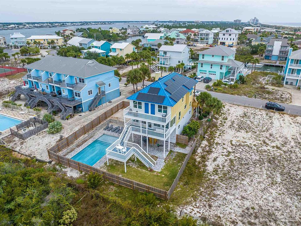 Effective Build date is 2010, and recently completely renovated "like new-build" Resort Style furnished home with astounding views of Old River and the Gulf of Mexico. Enjoy the large in-ground heated pool, then stroll steps down the street to access 2 miles of State Park Beach! The home backs up to the Riverside section of the State Park, this is a truly special opportunity for a primary, second, or investment home! No HOA fees, No rental restrictions plus additional half-lot with potential to build a guest home for increased revenue stream. Truly a rare find on Perdido Key! The home has a ground floor recreation room/office and double garage, ascend the stairs to the main living area with light and airy living room featuring a fireplace and beautiful natural light. There is a full bath, a bedroom without a closet and a state of the art kitchen, large dining area and a sun porch that spans the width of the home. Enjoy endless views and privacy of a mile of State Park preserve and the most stunning of sunsets! The kitchen has ample cabinet and counter space, granite countertops, an island and stainless appliances and a large pantry. The third floors features the Primary Suite with amazing natural light and views, a luxury spa-style Bathroom with walk-in shower, stand alone tub and double vanities, and a huge walk-in closet. Three additional bedrooms are spacious, and two have an open deck to take in the sunsets, and park/gulf views. All floors are new Luxury Vinyl Plank, newly painted throughout in coastal colors. Solar Panels provide for minimal energy bills! Don't wait to make your appointment to see this stunning property!