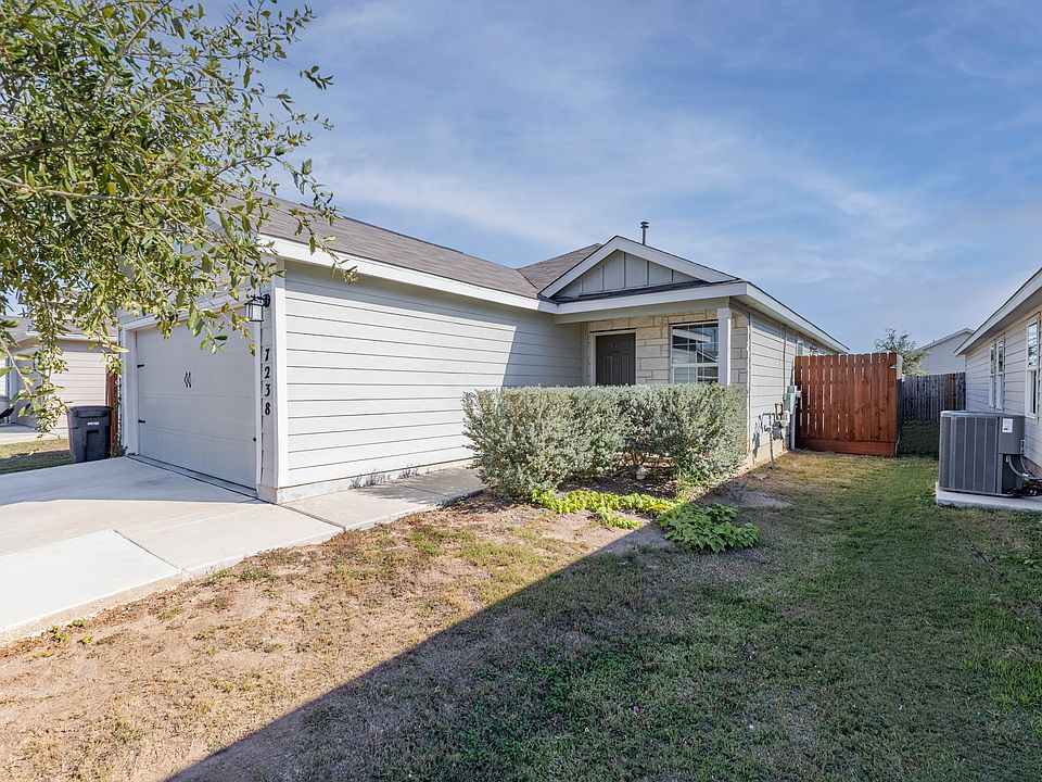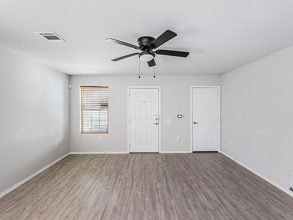 This cozy 3-bedroom, 2-bath home features an open-concept layout with a combined living, dining, and kitchen area. The kitchen offers granite countertops and overlooks the dining space for easy everyday living. The primary suite includes a private bath and a large walk-in closet. Two additional bedrooms share a full hall bath. A two-car garage provides convenient parking and storage. Located in a quiet community with easy access to shopping, dining, and major highways.