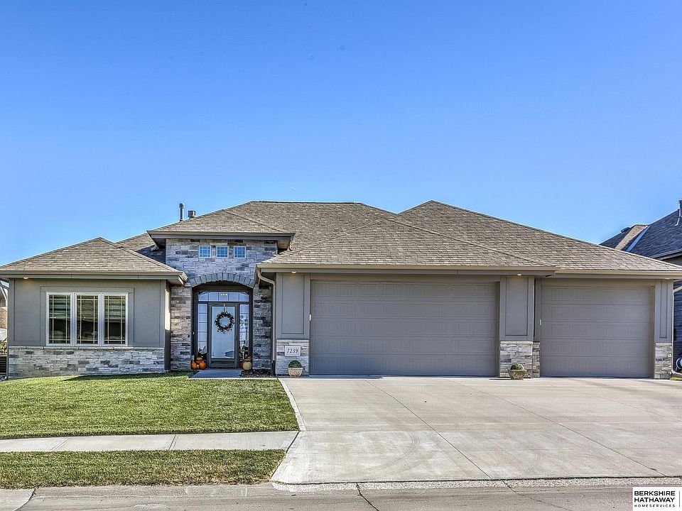 This meticulously maintained zero-entry ranch,sits on a west-facing lot in the Bennington School District & will exceed your expectations from top to bottom! The picture perfect exterior greets you in the front & paves the way to the modern interior featuring an expansive main floor w/ soaring ceilings; designer finishes; custom blinds; neutral paint colors throughout; a gourmet kitchen w/ gas range, big pantry & quartz counters; drop zone w/ extra cabinets & counter space; spacious living room w/ built-ins, cozy fireplace & bright windows;primary suite w/ huge walk-in closet & spa-like bath w/ quartz counters & walk-in tile shower plus sizable secondary beds too! Plan the perfect holiday party in the finished basement w/ wet bar & massive rec area plus an abundance of storage! Enjoy the covered deck while overlooking the flat, fully fenced backyard; the four-car garage or the prime location w/ nearby amenities, walking distance to the neighborhood pool or Flanagan Lake
