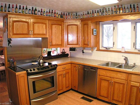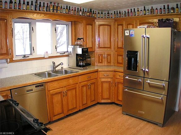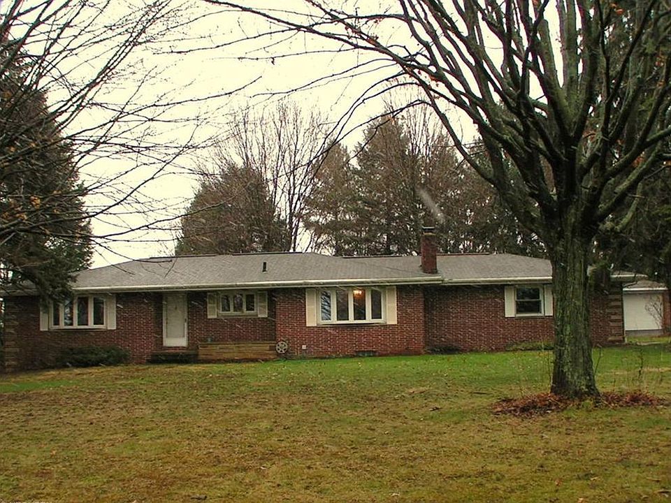 Sharon Twp. ** Brick ranch on two scenic acres has 4 bedrooms, 2 full and 2 half baths. Kitchen has newer oak cabinets, SS range & pantry. Dining room has a wood floor, bay window & stone wood burning fireplace. Large living room with bay window. Master BR and two main level bedrooms have newer wood floors. Remodeled full bath includes double vanity, tiled walk-in shower w/glass door, tub & tile floor. Finished walk-out lower level with daylight windows has a 13 ft by 31 ft rec-room with kitchenette, lounge w/half bath, 4th bedroom with full bath and two staircases for access. Off the rec-room is a patio with pergola. The out building with water & electric is 28 ft by 40 ft with 10 ft high doors. Great for a shop, boat, camper or motor home. Behind the shop is an above ground pool. Paved drive.