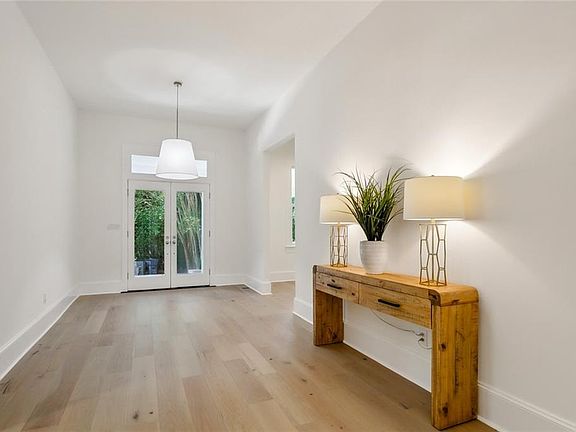 NEW PICTURES ADDED. Enter this 1.9 acre property through an archway of verdant bamboo and enjoy your own secret garden. Classic, raised Southern style home with contemporary/West Indies elements. 3 bedroom, 2.5 baths with soaring 10ft ceilings and new white oak (engineered) wood floors. Large, spacious foyer/center hall flanked on left by library with custom bookshelves by Steve Hasslock. Oversized primary suite to the right with private bath. Kitchen has new quartz counters, gold toned hardware, sub zero refrigerator plus a large "eat in" island. Enjoy your morning coffee in the light filled sunroom. Entertain in the gorgeous dining/living combo with double sided fireplace. 2 huge additional bedrooms conveniently located on the opposite side of the house from primary for privacy. 2 new HVAC systems have been installed. Deep screened back porch overlooking salt water pool and meticulously landscaped yard. Plenty of room to add a cabana, guest house and/or tennis court. Just minutes from downtown Covington, shopping, restaurants and schools.
