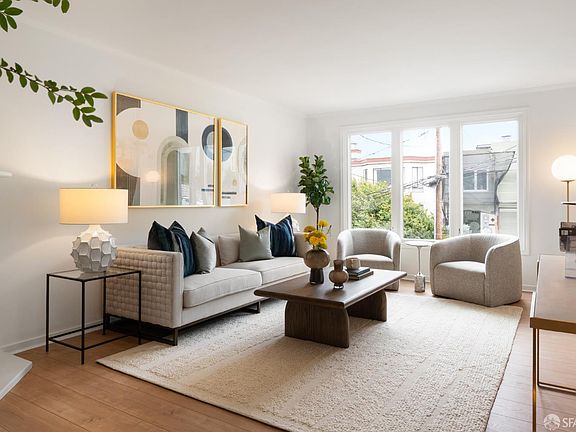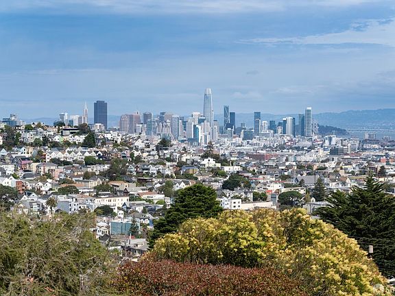 This impeccable mid-century home offers 2 bedrooms, 1 bathroom, a large bonus room and bath and breathtaking views. Set on an extra-deep lot in the Noe Valley hills, the home enjoys panoramic outlooks from Twin Peaks and the San Francisco skyline. Features include front and rear landscaped gardens, wide plank engineered wood floors, dual pane windows, custom lighting and nest thermostat. The main level features a spacious living room with a handsome wood-burning fireplace and a spacious dining area adjacent to a newly remodeled kitchen featuring new quartz counters, custom cabinets, tile backsplash, stainless gas range, hood, dishwasher and 4-door refrigerator. 2 well appointed bedrooms both with city views, and a full bathroom with tub and shower. Downstairs, an additional room and full bath provide flexible space for guests, office, or media. The deep landscaped walk-out rear garden, also with great views, includes a generous lawn, terraced beds, and mature fruit trees-perfect for entertaining or relaxing. Highlights include a one-car garage, laundry, and abundant storage. Close to shopping, dining, cafes and entertainment, access to public transit and freeways. Children and dog lovers and outdoor enthusiasts enjoy many outdoor areas, parks and dog parks