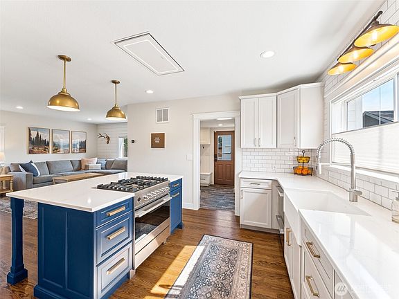 Modern living meets classic craftsman architecture in this high quality update done by Renewal Remodels | Refinished hardwoods | NEW designer kitchen w/ quartz counters | NEW SS appliances | NEW beautifully updated Bathrooms | Juliet Porch off primary suite recently REDONE from studs out, watertight, & NEW sliding glass door | Floorplan offers flexibility | HUGE heated and cooled 2 story detached garage plumbed for sink, fridge, & waterheater upstairs loft, & upstairs bonus room, offers excellent DADU potential or home office | Full ethernet run to house and shop | Alley access w/ rolling gate | Classic covered front porch | Walking distance to Pioneer Park, Clarks Creek, Sounder Train, Park&Ride, Farmer's Market, Library, dinning and more
