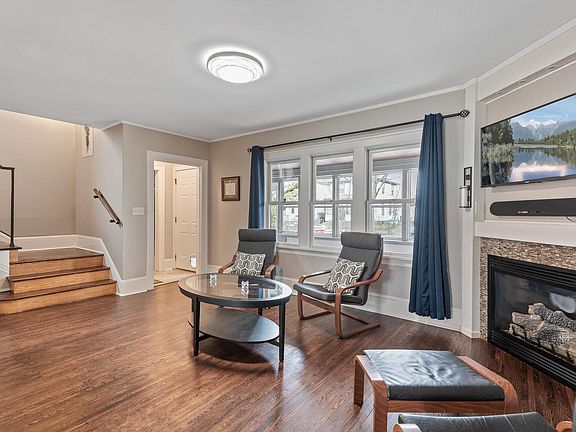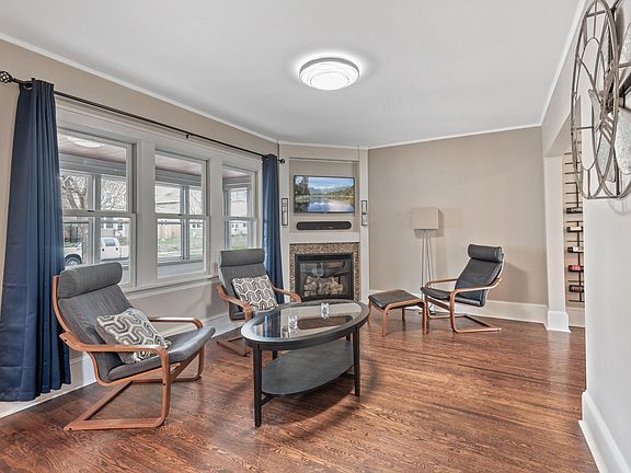 Move in ready home with so many updates! Only available due to relocation. Fresh paint & beautifully refinished hardwood floors + updated tile! A cozy gas fireplace in the living room, tons of storage in the dining room built-in, a refreshed kitchen with granite countertops & newer stainless steel appliances! Pantry closet with additional storage. Stylish lighting throughout. Rebuilt stairwells with lights, new railings & doors, newly updated basement - great detail on the ceilings & comfortable LVP flooring. A large storage room with a newer washer/dryer & tankless water heater. AC replaced in October of 2022 - yet to be used! Relax on the covered front porch or hangout in the large backyard. French doors open onto a composite deck. Spacious 1 1/2 car garage with updated walls. Approximately 2 owners ago the foundation was fully rebuilt, solid & water tight! Add an egress window and make it another bedroom or add a 2nd bathroom. So many options for added equity. Come see for yourself!