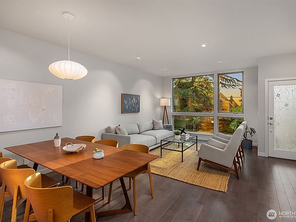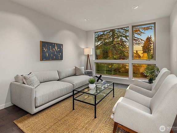 Elegant townhome in the coveted Harvard-Belmont neighborhood in Capitol Hill, built by award-winning Green Canopy NODE. Thoughtfully crafted to rigorous standards of quality and resource efficiency, this home offers refined finishes and a spacious floor plan. Inside, reclaimed wood paneling adds warmth to the living room, while the chef’s kitchen sets the stage for entertaining with a generous island, ample cabinetry, and seamless flow to a private back patio. The upper levels include three spacious bedrooms, highlighted by a full-floor primary suite with a spa-like bath, walk-in closet, and covered deck. Enjoy mountain, lake, and city views from the rooftop deck. One-car attached garage. Steps to cafés, dining, transit, and Volunteer Park.