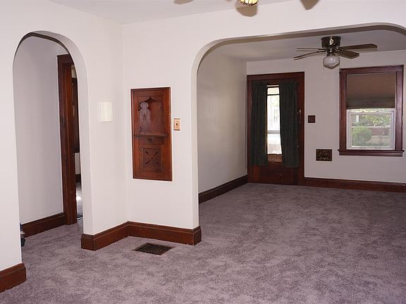 Priced to sell! Charming home,arched doorways,22x7 front porch,updated roof and siding. New A/C. New carpet on first and second floors. Freshly painted first floor. One car garage missing door. Basement walls and floor freshly painted. Home still needs some cosmetics. 1 year home warranty.