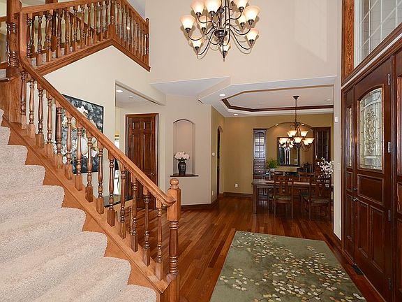 One of the most dramatic views in all of Waukesha County is yours from this spectacular custom built 2-story with full exposed lower level by Chapel Hill Homes! This home is nothing short of magnificent! The multi-gabled facade with soaring roof lines and gorgeous stone accents present a dynamic curb presence. An in-ground sprinkler system keeps the yard and landscaping lush! A beautiful wood 8' door welcomes you from the covered entry way. Enter and embrace the free-flowing interior that is bathed in glorious natural light! Volume 10' ceilings and beyond, expansive windows including a full wall of glass in the multi-story great room and rich warm hues all create a perfect living environment. Lustrous Brazilian Koa flooring flows from the dual story foyer, with its architecturally interesting ceiling and oversize chandelier. The brilliant flooring continues into the banquet size formal dining room. Here, you can entertain in style with its octagon tray ceiling framed in crown moldings that are a beautiful compliment to the built-in China cabinet and convenient butler pantry! Bon appetit! To assist the resident gourmet is a total Food Network inspired kitchen. This kitchen is awesome! A huge center isle is perfect for food prep. There are two sinks and the very best in stainless appliances including double convection wall ovens, a 6 burner gas range, built-in refrigerator, advance feature microwave, two dishwashers, beverage center and two disposals. The walk in pantry is a huge plus! The kitchen is surrounded by furniture-grade Cherry and Maple cabinets in a unique two tone arrangement. Glistening complimentary toned granite countertops prove beauty in function. The cabinets have added features including roll-outs, hidden spice pull-outs flanking the gas cooktop, plate racks and soft-close drawers! This kitchen is ready to spur on your culinary creativity! Rich Maple flooring flows from the kitchen into the large adjoining dinette. Enjoy casual dining with a view that is breathtaking! A patio door leads to a 14 x 13 screen porch that opens to a large raised maintenance-free deck with steps to a lower level patio! In full view of this fantastic kitchen is the dual-story, detailed coffered ceiling great room including a handsome raised hearth gas log fireplace with marble surround and gorgeous library panel! Built-ins flank the fireplace. The entire house is complete with built-in speakers and a sophisticated network that allows you to control all the mechanicals remotely. Tech lovers, you will be in HEAVEN! The key to a smooth running household is found in the main floor office with tray ceiling and double French door entry! There are two powder rooms for added convenience on the first floor. Luxurious main floor master suite with recessed ceiling and mood lighting! Your own personal spa awaits in the master bath with oh-so-comfortable heated tile floors! The oversize shower is programmable with multiple heads, rainmaker shower head and body sprayers. Soothing whirlpool tub and dual vanities plus private water closet! The walk-in closet is accessed through the bath. Pamper yourself- you deserve it! The second floor of this incredible home is designed to provide the utmost in comfort! There are two large bedrooms arranged in a Jack-and-Jill format. Bedroom 3 has a deck with a tremendous view! All the bedrooms are outfitted with organized walk-in closets. Bedroom 4 is en suite with a cathedral ceiling! An extra bonus is revealed as you pass through the walk in closet. A large walk-in attic for extra storage is a welcome plus. Both baths upstairs are loaded with tile. The two baths each have a shower over tub and solid surface counters. Added Amenities: In-ground sprinkler system.