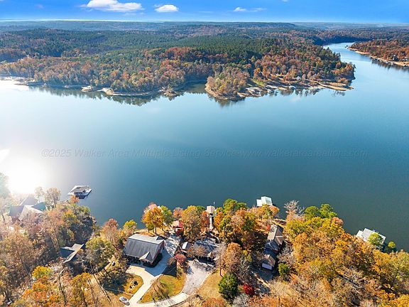 Smith Lake (Main Sipsey) Views, views, and more sunset views! This 3/2 home sits just perfectly to capture long range vistas all year long. Enjoy the gorgeous crystal clear water with a rock shoreline. Aluminum dock with lifts. The lakeside porch has a hot tub overlooking the lake. You have detached storage and a one car carport. Offered furnished ready to go! Sitting on a permanent foundation HVAC and water heater new in 2025. Fish light off dock. No rental restrictions. Paved roads to the development. Near Chef Troy's famous restaurant!