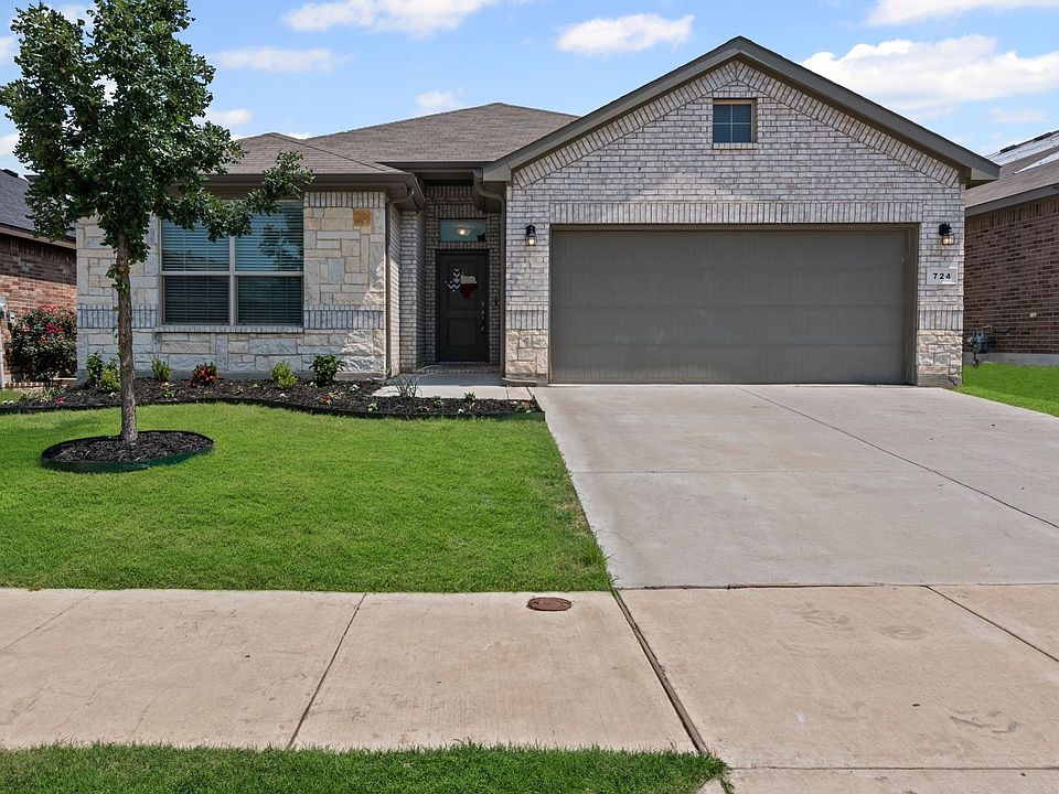 Welcome home to 724 Cromane! One owner, single story home with open floor-plan and lots of natural light throughout. Offers the ideal layout with split bedrooms, 4 bedrooms, 2 bathrooms, and a dedicated office. All bedrooms have walk in closets. Enjoy hosting friends and family in the updated kitchen with a large island, tiled backsplash, gas range, stainless steel appliances, walk in pantry, and abundance of cabinetry for storage. Sprinkler system in front and back. Storage shed conveys! Beautiful community amenities include a sparkling pool, a fun playground, walking trails that weave through mature trees, and a serene pond. This home is in the award winning NWISD with easy access to 287 and 35. Close to shopping, dining, entertainment and a short drive to downtown Fort Worth! Available for quick close!