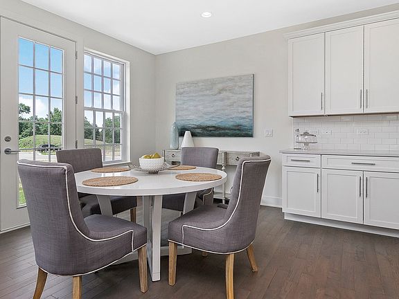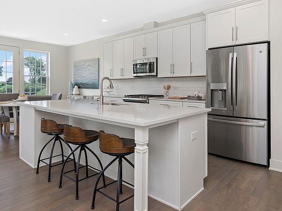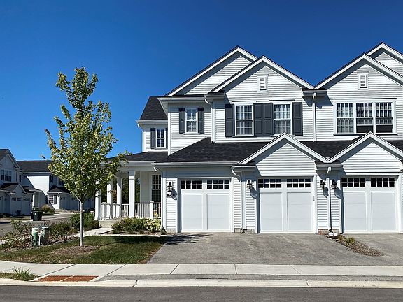 Available for move-in on 11/3. Welcome to luxury living at Roslyn Meadows; an inviting, maintenance-free, 16-unit, newer construction, townhome community ideally located close to downtown Barrington's quaint village shops, dining, parks, Metra station, and in the nationally recognized 220 school district. This 2,453 square foot townhome features 3 bedrooms with 2.5 baths, a family room fireplace, an attached 2-car garage, a covered front porch with an extended side porch, and a private outdoor patio. The spacious, light-filled, main level, open floor plan, is ideal for family living and entertaining. Additional rooms include a 2-story foyer, mudroom, 2nd-floor loft, 2nd-floor laundry room with washer and dryer, and full basement. The kitchen features a breakfast area with a french door leading to the patio as well as a large breakfast bar island perfect for four stools. The kitchen's modern classic finish includes white quartz countertops, grey cabinets with 42 "uppers, soft close drawers, ceramic subway tile backsplash, and GE stainless steel appliances. The roomy primary bedroom suite with two walk-in closets, a double vanity bath, and a fully tiled shower with a glass, frameless door, is a true luxury. There are luxury features throughout including 9' ceilings and hardwood floors on the main level. The upper level is carpeted. Roslyn Meadows is pet-friendly and the development includes a neighborhood park. The interior photos, video, and 3-D floor interactive floor plan represent the original model home. The floor plan is the same. The finishes are the same except the cabinets are grey as shown in the primary bathroom picture. 2023-09-17