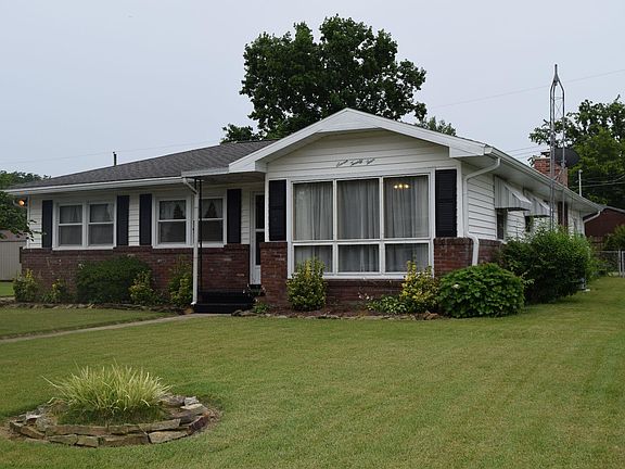 THIS PROPERTY WILL BE OFFERED IN AN ONLINE ONLY AUCTION CLOSING ON TUES., AUG. 12TH @ 6PM. The LIST PRICE is the STARTING BID of the online auction, not what the property will sell for. Don’t miss this opportunity to bid on a well-maintained 3 bedroom, 1 bath brick and vinyl-sided home built in 1958. With 1,513 sq. ft. of living space, this property offers comfortable living in a convenient layout. The bright living room features a large picture window and ceiling fan, while the open kitchen/dining area flows into a spacious family room with cathedral ceilings, exposed beams, wood paneling, stained glass windows, and a cozy wood-burning fireplace. The kitchen comes equipped with a Whirlpool refrigerator/freezer, gas range, and a double sink. Each bedroom includes a ceiling fan for comfort, and the centrally located bathroom—with tub/shower combo and attractive wainscoting—has dual access from both the hallway and family room. An extra-long detached garage with electric opener provides room for two vehicles parked end to end, or could be transformed into a workshop. Enjoy the outdoors from the brick patio in the partially fenced backyard. The bricks used on the house have historical significance, as they were salvaged from the old Springfield School House (off Springfield Road, half-way between SR 69 & Wadesville) when it was demolished. Whether you're a first-time homebuyer, investor, or looking to downsize, this home has solid potential.