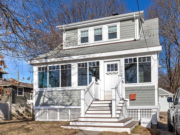 Welcome to 724 East Street! A must see 2-bed, 1.1-bath, Cape Cod / Bungalow home, which has been completely remodeled. As you enter the home from the enclosed front porch, you are immediately welcomed into the LR, which offers a gas fireplace & beautiful mantel. Heading to the rear of the home is a fully applianced kitchen, with SS Appliances, granite counters & direct access to the DR with French doors leading to a fence enclosed level rear yard. The 2nd floor with 9' ceilings offers 2 generous sized bedrooms. The primary bedroom offers a custom closet. The magazine worthy Full bath has marble floors & shower, a beautiful claw-foot tub, Robern & Villeroy fixtures & Toto toilets. Additional features include recessed LED lights throughout, new mini-ductless splits, newer doors, windows & a 1 car det garage, all within close proximity to local shopping, schools, vibrant Dedham Square, Legacy Place, Endicott Estate, public transportation & highway access.