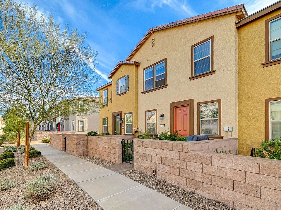 Welcome to your stunning 3-bedroom townhome, perfectly located right off the 215 freeway in a desirable gated community! This beautifully designed home features an open-concept living space, ideal for entertaining and everyday living. The spacious kitchen boasts gorgeous granite countertops, stainless steel appliances, and modern white cabinetry, making it a chef's delight. Enjoy the convenience of an upstairs laundry room equipped with a full-size washer and dryer. The primary bedroom is a true retreat, offering privacy from the guest bedrooms, a walk-in closet, and a luxurious ensuite bathroom with double sinks and a large shower. With elegant tile flooring throughout the downstairs and a 2-car garage, this townhome combines style and functionality. Don't miss out on this exceptional opportunityschedule your showing today!