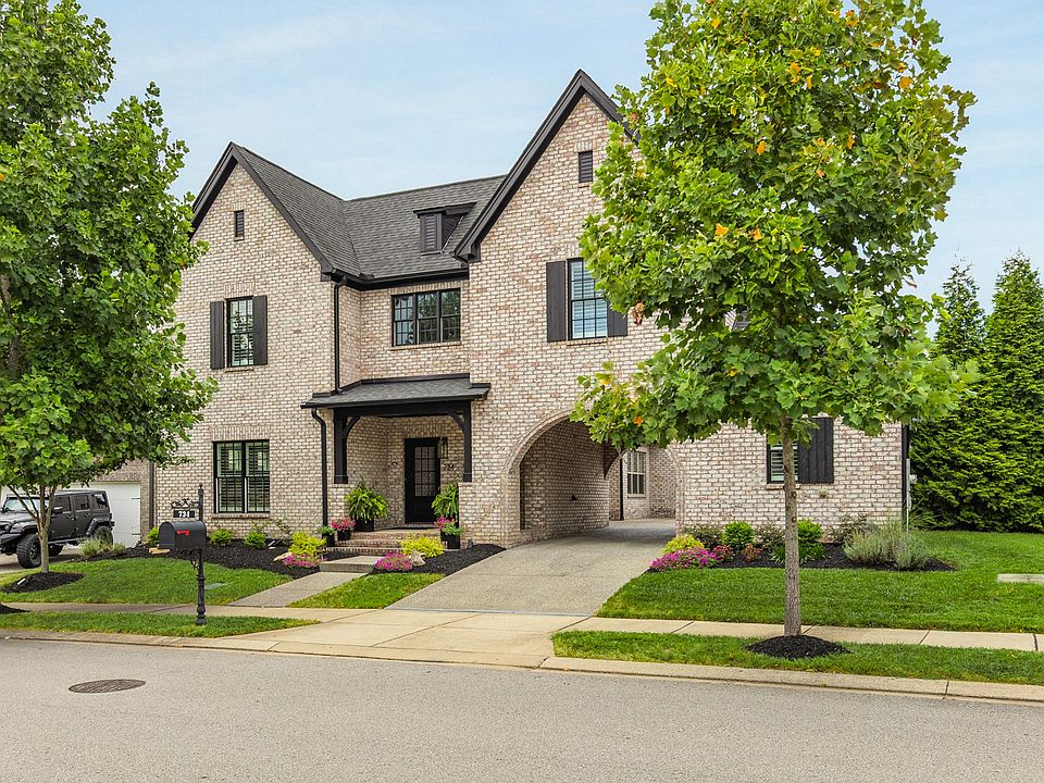 As featured on HGTV’s House Hunters, this Franklin beauty blends timeless craftsmanship with elevated modern luxury. All-brick exterior and porte cochere set a distinguished tone that continues inside, where natural light pours across hardwood floors and custom millwork. Open concept kitchen impresses with white cabinets, large island, and gas range flowing seamlessly into coffered-ceiling living room with fireplace and built-ins. Custom metal railings with oak wood accents, hand-crafted and welded by Stiltz Iron, add an architectural touch. Versatile spaces include a home office, fitness room, and bonus room, offering flexibility for today’s lifestyle. Primary suite showcases custom walk-in closet and spa-inspired bath. Throughout the home, enjoy ample storage and thoughtful design details that enhance daily living. Three outdoor living areas—including built-in stone barbecue—extend entertaining potential or quiet evenings at home. Three garage spaces complement porte cochere for added convenience. Enjoy resort-style community amenities: two pools, playgrounds, basketball court, walking trails, creek and kayak access, and new 180-acre Pearl Park—minutes from Historic Downtown Franklin.