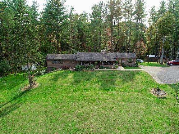 Where to begin?! This home and property has an abundance of great features. Start with the immaculate and well maintained, rustic, ranch style home with walk-out basement. Follow that up with a detached garage, 25'X40' pole barn workshop, AND an unfinished living quarters with 2 bedrooms/2 baths ready to be completed! All of this sits on 51+ acres with a large pond! Also has 2 cabins on the property. A dream property with multiple uses!