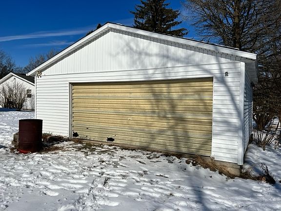 Cute 1 bedroom move in ready home. Double closets in bedroom, spacious living room. Interior updated. Full basement with second toilet and laundry room area. 2 car detached garage with door opener. Newer roof on house and garage done in 2019. New water heater in 2021. New flooring throughout the house in 2021. New front and back patio. Listing agent is related to seller.