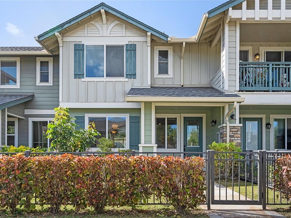 Welcome to Kahiku at Mehana! This spacious, open floor plan has high ceilings and a large primary bedroom with mountain views and a walk-in closet. Includes split ACs in every room, full size washer/dryer, windows that bring in lots of natural light, a gated front yard and a back patio. There is a half bath downstairs for convenience and the home comes with a 1 car garage, an additional parking spot next to the garage and plenty of guest and street parking. As a mixed use development this community has many neighborhood business for your convenience and residents can enjoy the use of common areas including a swimming pool, playground, basketball court, grass fields and a community center. Enjoy proximity to all that Kapolei has to offer including Costco, Target, movie theaters, Ka Makana Ali'i (outdoor mall), the Ko'olina resort and the freeway entrance just a few minutes away.