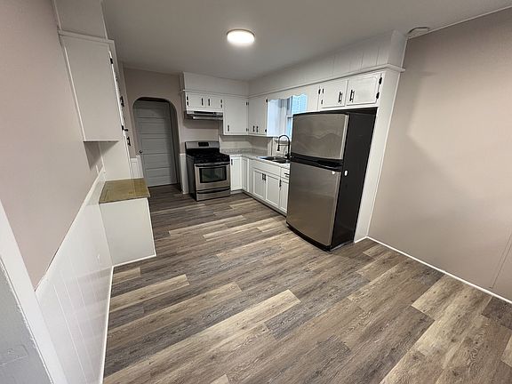 Step inside to find new flooring, fresh paint, and abundant natural light from the large bay windows. The updated kitchen features stainless steel appliances, bright cabinetry, and plenty of counter space. Upstairs you'll find three bedrooms with extra-large closets and a full bathroom. A second full bath is located in the basement, offering extra convenience and flexibility. Enjoy outdoor living on the covered front porch.