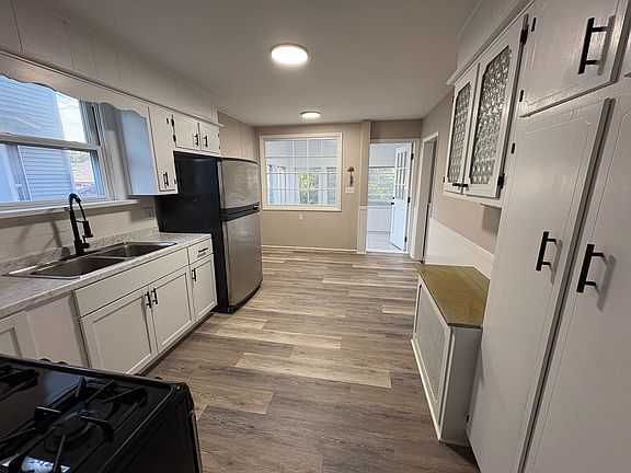 Basement with bathroomCovered front porchLarge bay windowsAbundant natural lightBright cabinetryUpdated kitchenNew flooring