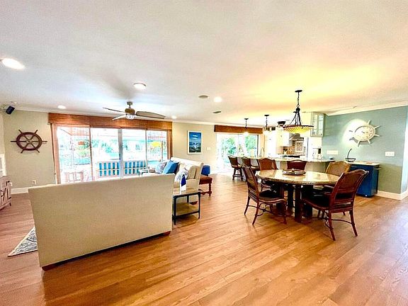 Available Immediately - No Fixed Bridges! Stunning waterfront residence offers the very best of Florida paradise living. Fully furnished and beautifully styled, home offers 3 upstairs bedrooms, including a spacious primary suite with a private balcony, plus 2.5 baths and a 2-car garage. A versatile 4th bonus room is perfect as an office or den. Recent upgrades include brand-new flooring, fresh paint, and elegant modern decor throughout. Designed for entertaining, the open-concept kitchen and living area flow seamlessly to your own backyard retreat. Sparkling pool, built-in BBQ, covered patio with teak furnishings, lush tropical landscaping, and accent lighting that creates the perfect evening ambiance. With 80 feet of water frontage, a private dock, and a 10,000 lb. A boater's dream! Just minutes to Peanut Island, some of the best restaurants in our area, shopping, local attractions